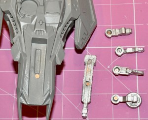 All the weapons were magnetised so the model can match the options chosen in an army list. It also makes painting easier particularly if you have a magnetised stand or piece of steel to hold the weapon while it’s being worked on. 4mm x 2mm circular neodymium magnets were used on the support and main weapons as shown.