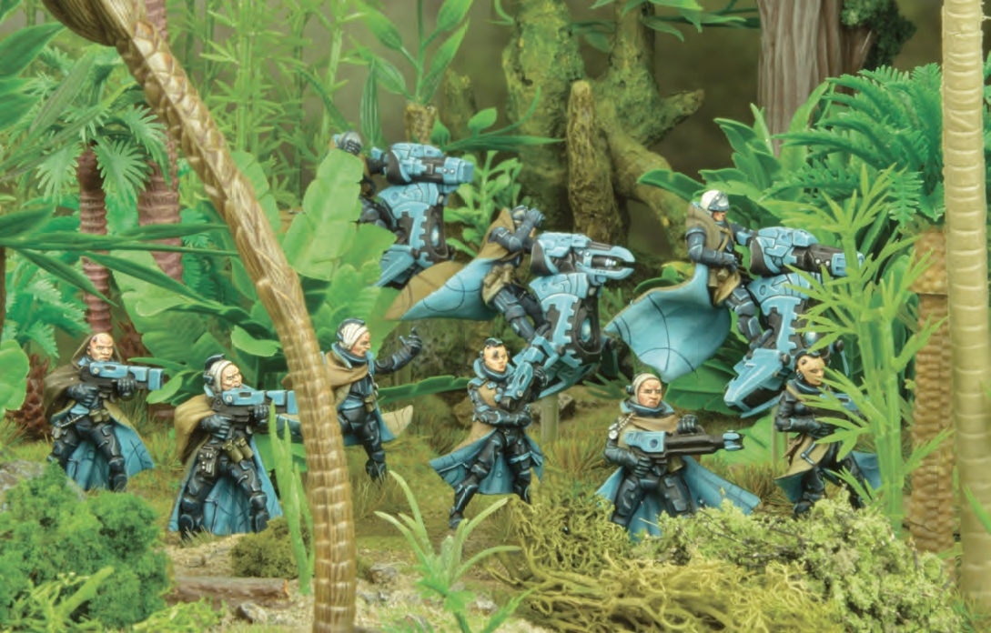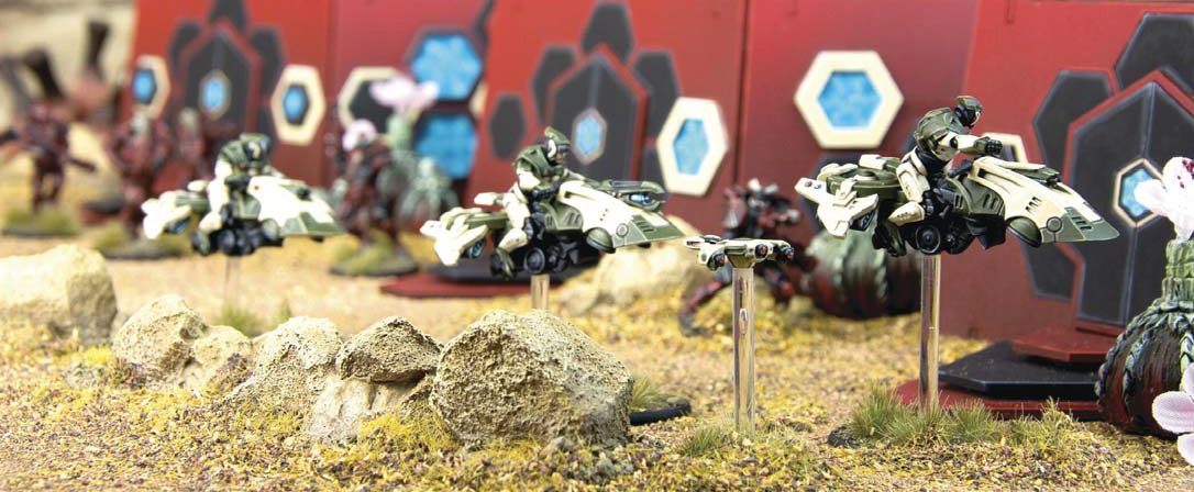 The C3’s ST500 Interceptor skimmer is a light vehicle than the Intruder and a key component of the C3’s Drop forces. However, one or two squads are also often seen alongside regular troops in a scouting role. The vehicles themselves are armed with deadly twin plasma carbines and any of the twin carbines can be replaced with a plasma lance for a hard-hitting option, though such a change is best if accompanied by a spotter drone. The troopers themselves all carry standard C3 equipment in the shape of hyperlight armour and plasma carbines.