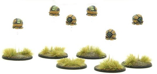 Probes like scouts and targeters tend to operate in shards – independent groups of drones that scour the battlefield and carry out their assigned roles. A typical shard consists of four or more probes but only a single shard of each type of probe can be used – though more probes can be bought at higher FLs (check the army list). For most purposes each model (a scout probe) in the shard is treated as a unit in its own right, but the entire shard contributes only one order dice to the dice bag.