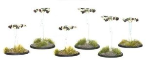 Scout probes are more expensive than targeters simply due to their flexibility: they merely have to draw a line of sight to a target or be 10″ from it to be useful. In an army with a great many support weapons, or against a force (like the Algoryn) who uses infiltrators and camo drones, they can be very useful.
