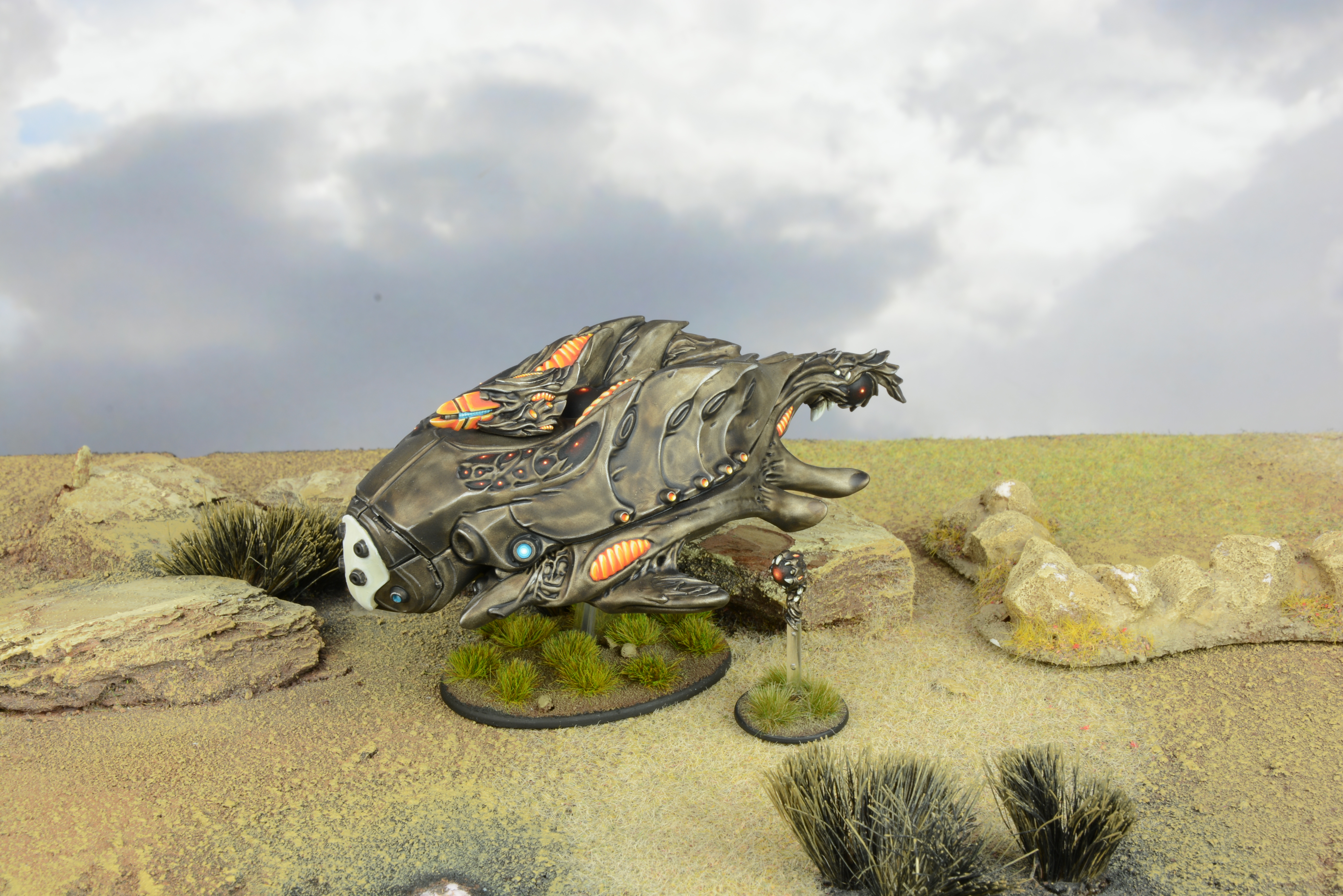 The Isorian‘s Tograh MV2 transport is very similar to the T7 and is can be found substituting for the T7 in Freeborn field forces. It is a drone, but has the organic technology and aesthetic of the Senatex. Whilst carrying similar weapons, and is available in very similar options, the Tograh can also be equipped with the Isorian phaseshift technology as added protection.