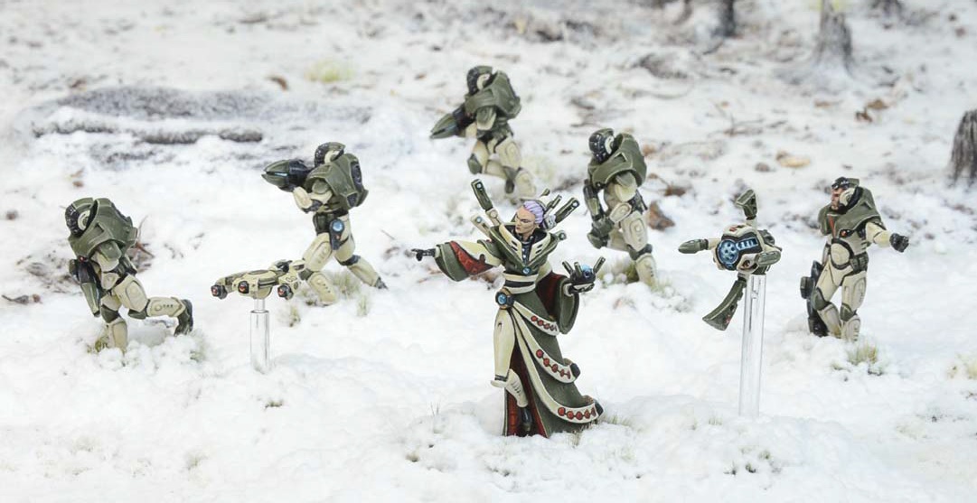 Strike Squads form the core of the Concord Combined Command’s (C3) armed forces and are amongst the best-equipped fighters in all of Antarean space. They carry multi-function plasma carbines capable of punching a hole through alll but the heaviest armour or shooting rapid bursts of deadly plasma bolts. Strike Troopers are protected by invisible hyperlight armour suspended from the nano-cored casing of their battle suits. This advanced armour provides complete atmospheric isolation as well as effective shielding against enemy weapons. Strike units are accompanied by small buddy drones, such as spotter drones that act as the unit’s ‘eye in the sky’ feeding vital targeting information into the squad’s sophisticated combat shard.