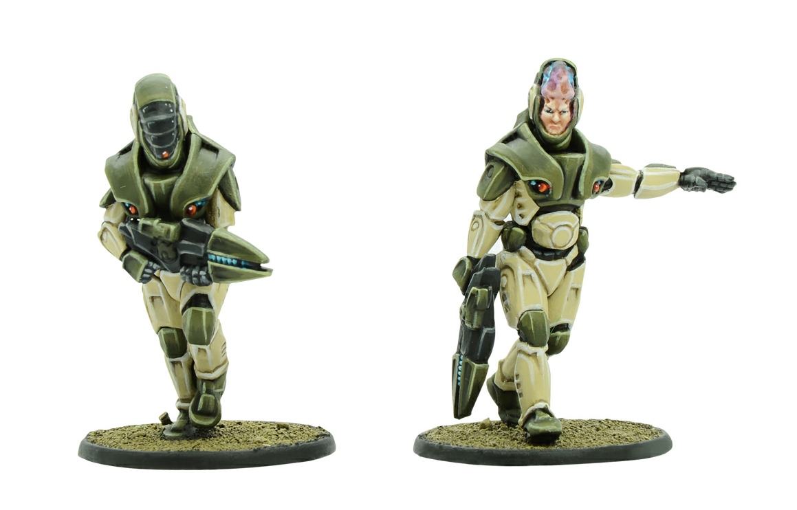 Indeed, anyone visiting a Freeborn trading hub would think the number of panhuman species to be countless. This is not quite accurate as amongst some advanced cultures, rephenotyping to change the look of an individual is common, sometimes even adding scales or feathers and sometimes changing in tune with fashion! The Concord Combined Command (C3) accepts any panhuman within its ranks. Whilst most C3 panhumans look no different to humans of the 20th century, other than being fitter, healthier, more balanced and likely to have implants, there are some who are more likely to differ markedly from baseline panhumans. In their armour, of course, there is little to see but their heads and faces, and only occasionally build or size, but they are often employed to handle specialised roles.