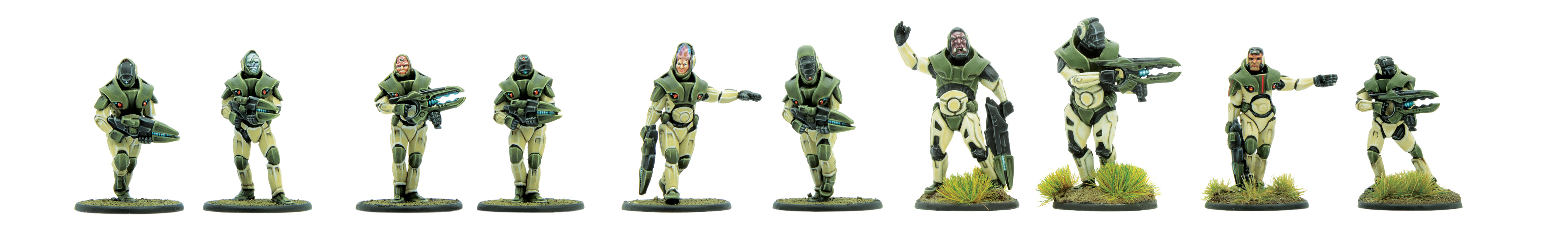 The Concord panhumans can be comparred on the following. All the models are to scale on a 25mm base.