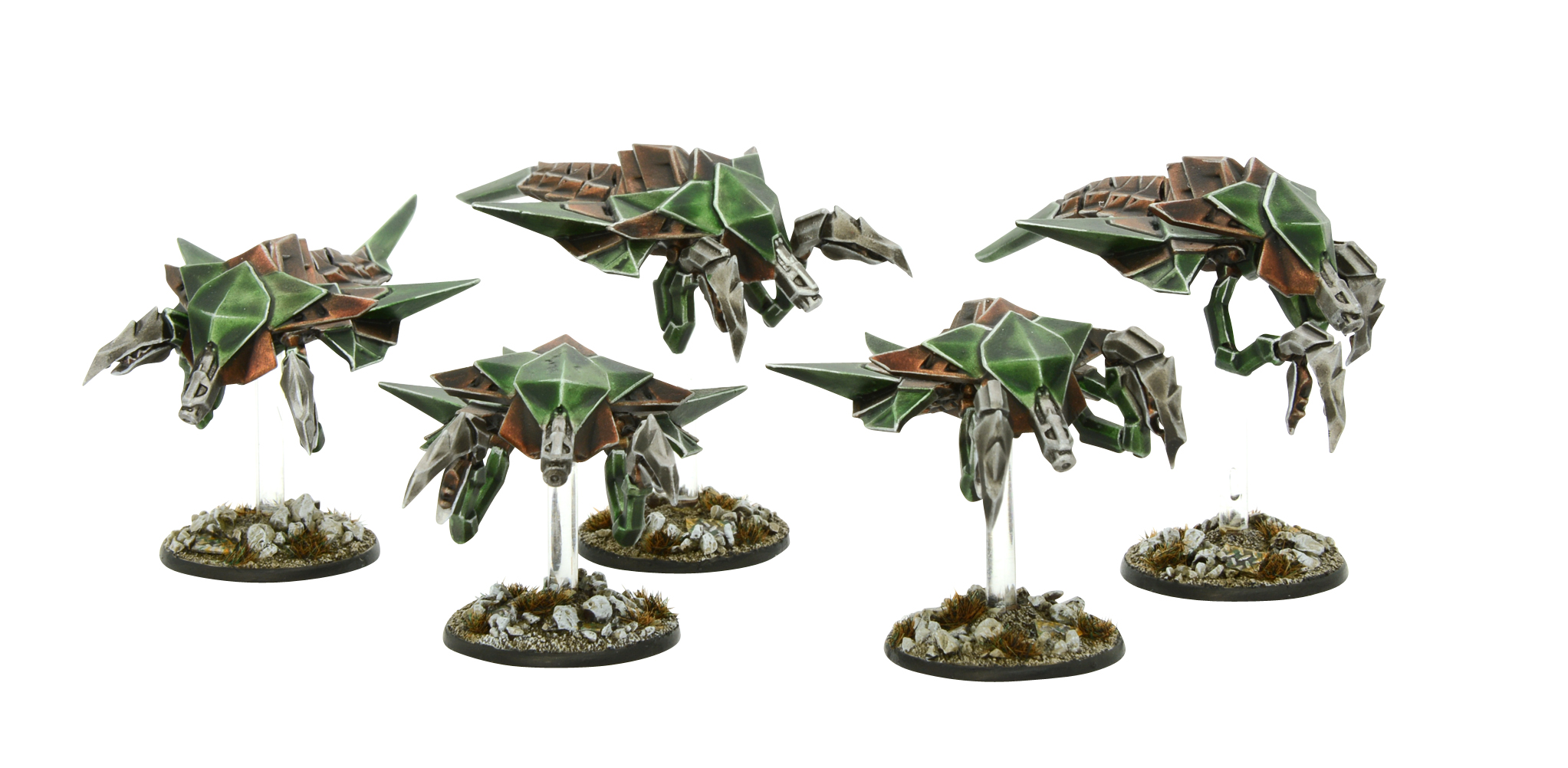 Like all Virai, warrior drones rely on their architectors for in-flight battlefield repairs and substantial amounts of command and control. Not being dependent on nanospore, they are immune to Scramble munitions and, of course, being artificial beings, Scoot munitions have no effect.