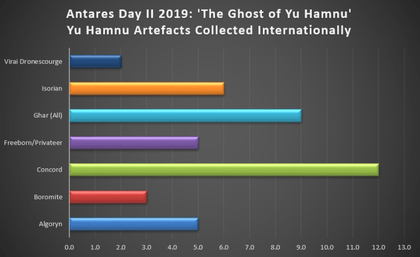 The Concord gained the most victory points but mainly because they flooded the systems with troops (12 players with Concord!). Militarily, they dominated the worlds on which the artefacts were located – no doubt due to their deep concerns about the apparent collapse of Xilos and a wish to save Yu Hamnu from wherever she is trapped! Relatively speaking, however, it was a number of other factions who ruled the day, the Isorians and Ghar doing very well. The Virai collected a few – perhaps not enough to be useful unless they can use it to unlock the secrets of Xilos and the gate collapse – and the Boromites collected enough to be secreted away by one of their semi-mystical guilds, who will no doubt use them to benefit the Boromite cause.