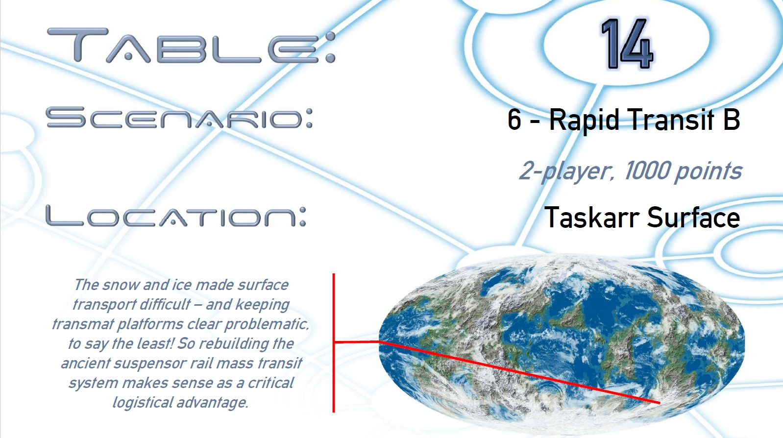 We had seven narrative scenarios, only three of which the attendees would get to play. This meant they had to pick their forces carefully as an army optimised for one scenario would fail at another. Several of the scenarios were taken from The Dronescourge Returns and adapted for the day, and one even used the soon-to-be released corridors and starship compartments in a PDF to be released with the book, this one in a mixed explore-and-hold game. Several scenarios were in the snow and a tundra of Taskarr, and these involved destroying a suspensor-bed mass transit systems or finding a hive into which some Virai had hidden themselves.