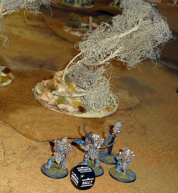 We didn’t want to put pressure on any gamer, so there was no Faction prize or ‘winning army’ prize, but we did have a prize for the most disastrous or memorable moment. There were several to choose from: a lone Ghar slave master facing down hordes of opponents in one of the starting games; Algoryn AI bravely wiping out a troop of lavamites before the lavamites could even close; and a troop of pitiful Ghar Outcasts who managed to run the length of the table and come within 2” of escaping before they were gunned down to an Outcast by the feared AI.