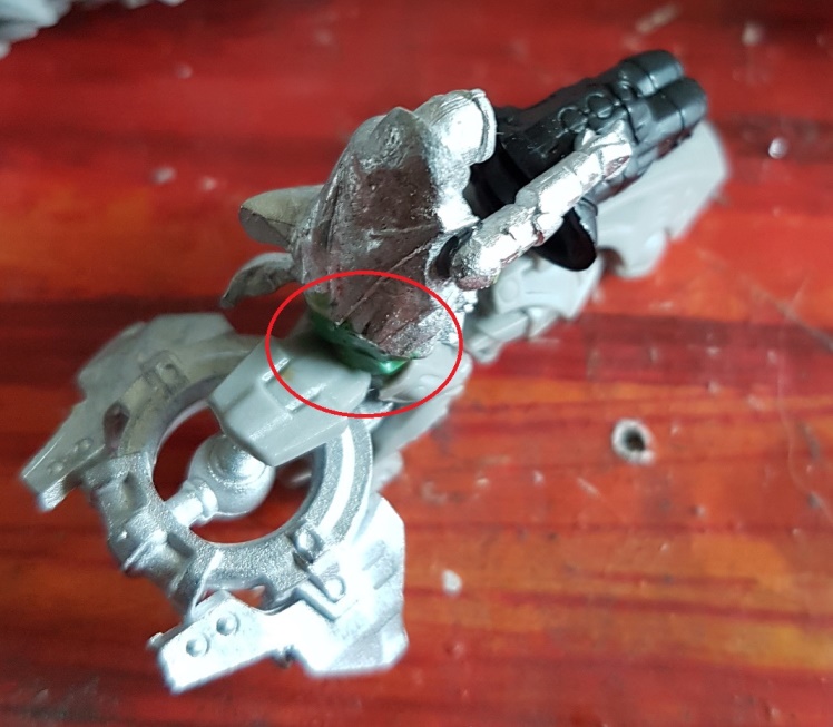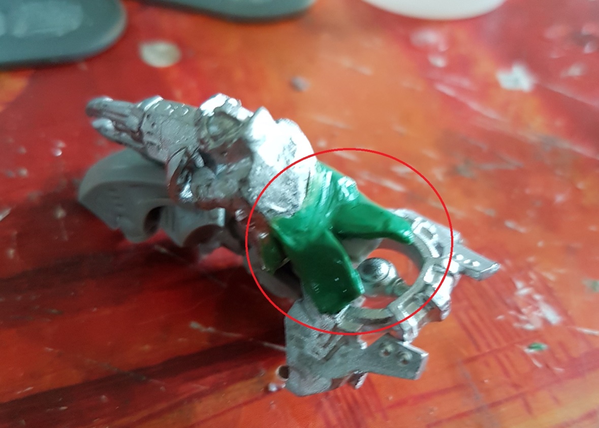 I did consider cutting the C3 rider legs off the bikes but came to the conclusion it would weaken the structure of the bike too much, it would take a lot of work to remove them and reposition the Freeborn rider’s legs and this would not give any greater benefit overall (I am taking it that the Freeborn also “borrowed” the C3’s trousers). So the interceptor needs to be cut ready to fit the torsoe, weapons and arms (fig 4).