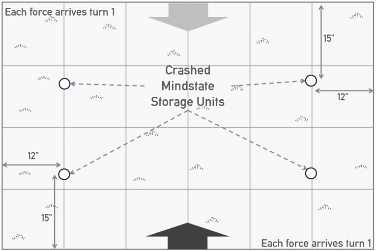 One of the supporting IMTel starships in orbit has exploded. Whilst most of the components have burnt up on re-entry, the cores with the mindstates of citizens were built with survivability in mind and have survived both the heat and the impact. Though the location is remote and far from your forces, you must recover the mindstates, either to save your own citizens for clone implantation, or to interrogate the mindstates for the information they hold. The problem? You have no idea which mindstate units have survived the crash!