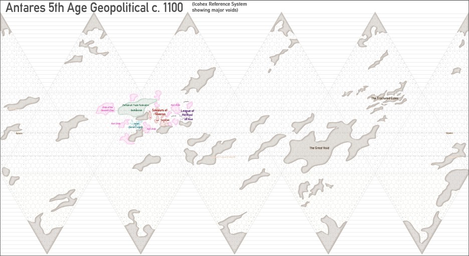Given this fractured and tumultuous history, the timeline has had to be amalgamated from different sources, though the Isorian records dominate much of the later surviving records. It appears, however, that the Fifth Age lasted just over 2000 years before Antares collapsed once more.