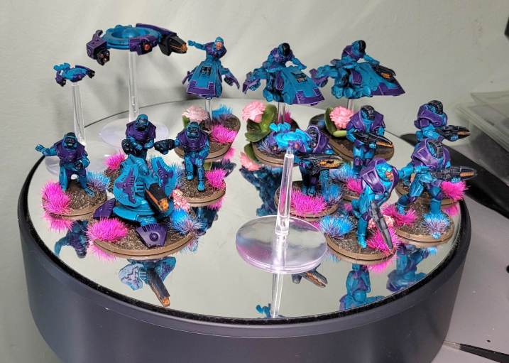After about a week of indecision, I managed to get some time on the table with both factions, but it didn’t help me come to a decision. During that time I was looking at paint schemes for both factions, and it brought to mind an article I’d seen recently on colour shift paints. After a few minutes of frantic searching I found the article again. I knew I had to paint an army in these colours, but which one? The thought occurred to me that the colour shift paints would be a fantastic representation of the Isorian Phaseshift armour, which is how I decided on the mighty Isorian Senatex. I even managed to snag a box of Tsan Ra Phase Troopers from Jamie’s bottomless pit of miniatures, giving me a head start on painting. Time to get cracking!