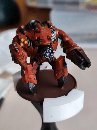 I primed everything in grey and then airbrushed in Blood Red – the advantage of the Ghar armoured units when it comes to painting is that by this point most of the work was done. Next I painted flat black onto any areas I thought looked like engine parts – already much better.