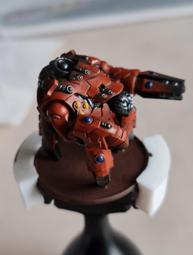 While the standard white paint scheme for the Ghar looks great, I wanted to make them my own, but I was unsure what colour I wanted my units to be. I was leaning towards a yellow or ochre colour scheme, but it wasn’t bold enough. I rummaged through my paints and found an old Citadel Blood Red – the colour of danger and the blood of my enemies – and knew right away that this was the base colour I wanted.