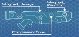 “Obviously we have the standard mag-gun here. Where a higher rate of fire is required we can provide the mag-repeater. It has a lower range and each round is less penetrative but it has a substantially increased rate of fire.”